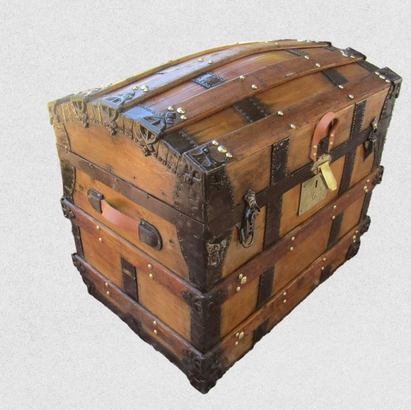 ANTIQUE BARREL TOP TRUNK C 1890's