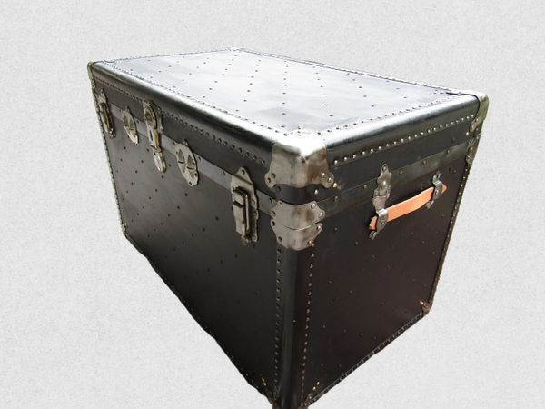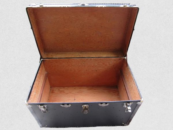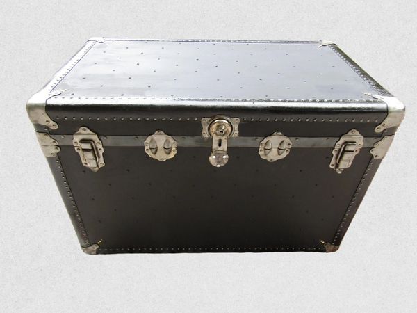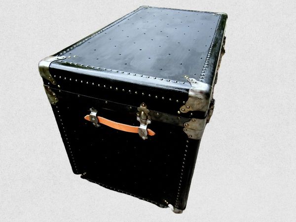 VINTAGE 1930'S BLACK STEAMER TRUNK